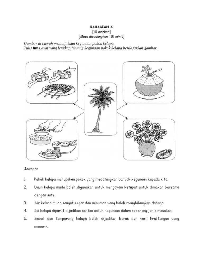 Cikgujep contoh jawapan bahagian b penulisan kegunaan pokok kelapa. Panjang ulasan kamu hendaklah antara 50 hingga 80 patah perkataan. Digunakan untuk membuat sarung ketupat dan makanan ternakan seperti lembu. Bm t6 isnin ulasan flip ebook pages 1 1 anyflip anyflip. Antaranya, air buah kelapa muda boleh diminum untuk menyejukkan .